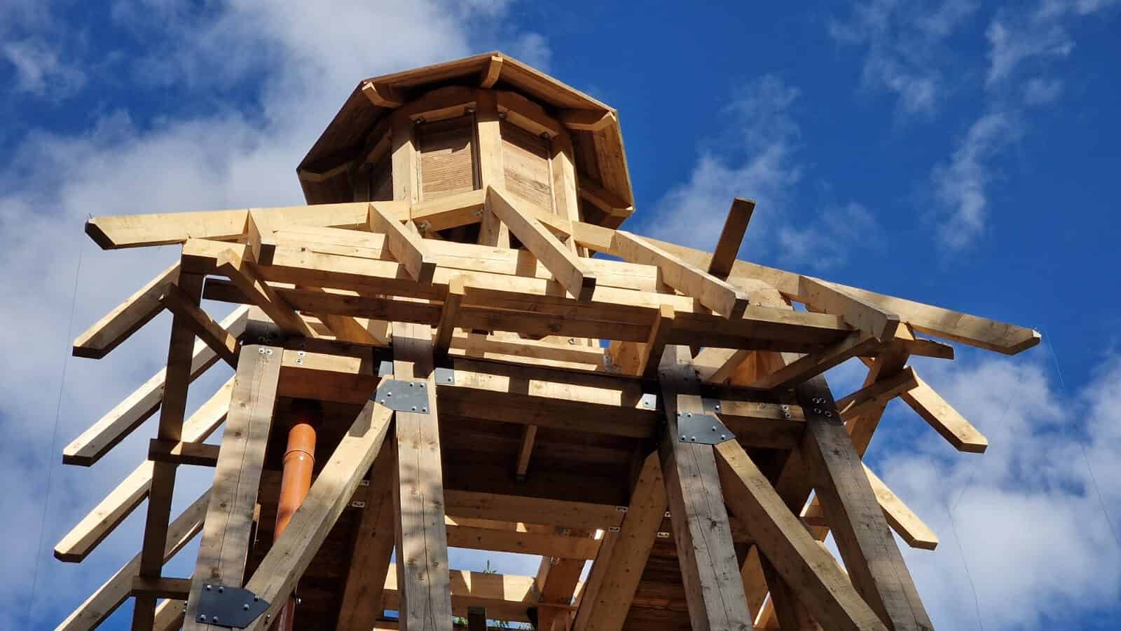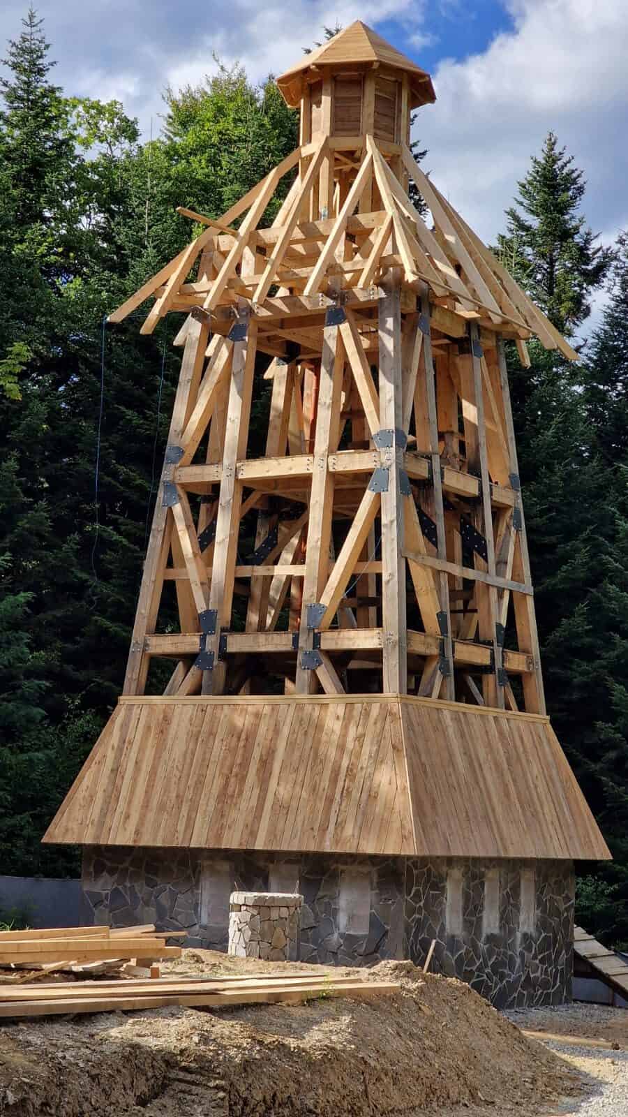 Wieża o docelowej wysokości około 13 metrów połączona jest ze sztucznym, podziemnym zimowiskiem za pomocą przelotu, umożliwiającego dostęp również badaczom prowadzącym monitoring. Zdjęcia przedstawiają początkowy okres budowy – fundament i piwnice. Artykuł został uzupełniony o zdjęcia pokazujące dalszy postęp prac.
